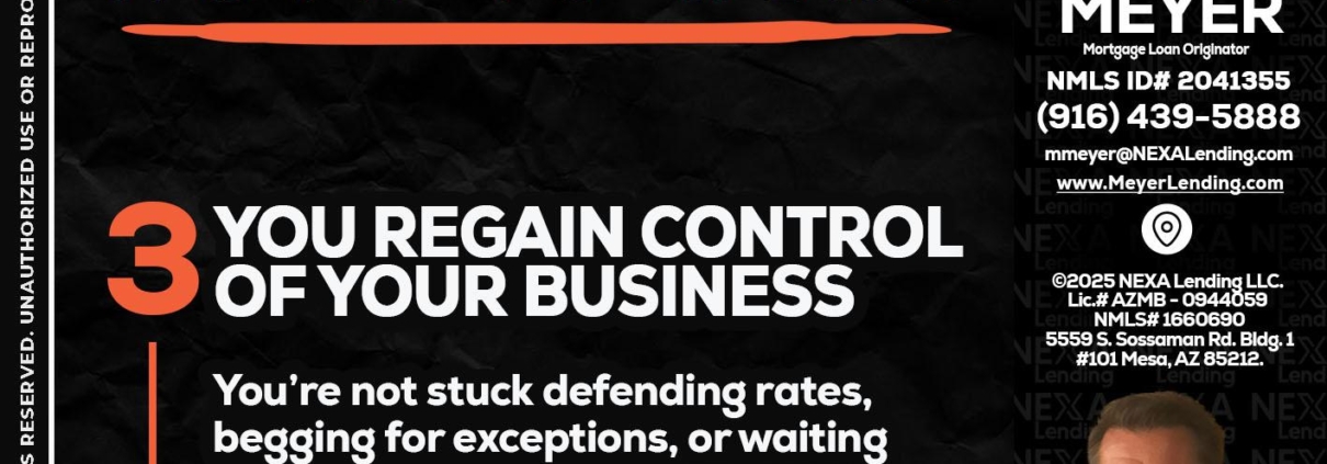 Hi, my name is Mark Meyer. I’m a Loan Officer with NEXA Lending LLC., offering personalized mortgage solutions, fast customized quotes, great rates and service with integrity.