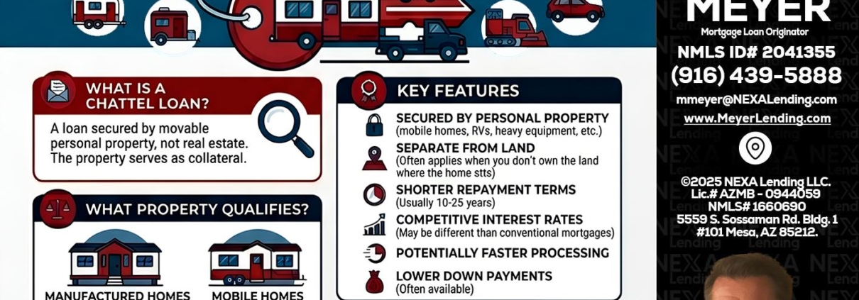 Hi, my name is Mark Meyer. I’m a Loan Officer offering personalized mortgage solutions, fast customized quotes, great rates and service with integrity. If you’re interested in learning more about the Chattel loan or any other, just let me know and I’ll walk you through your options.