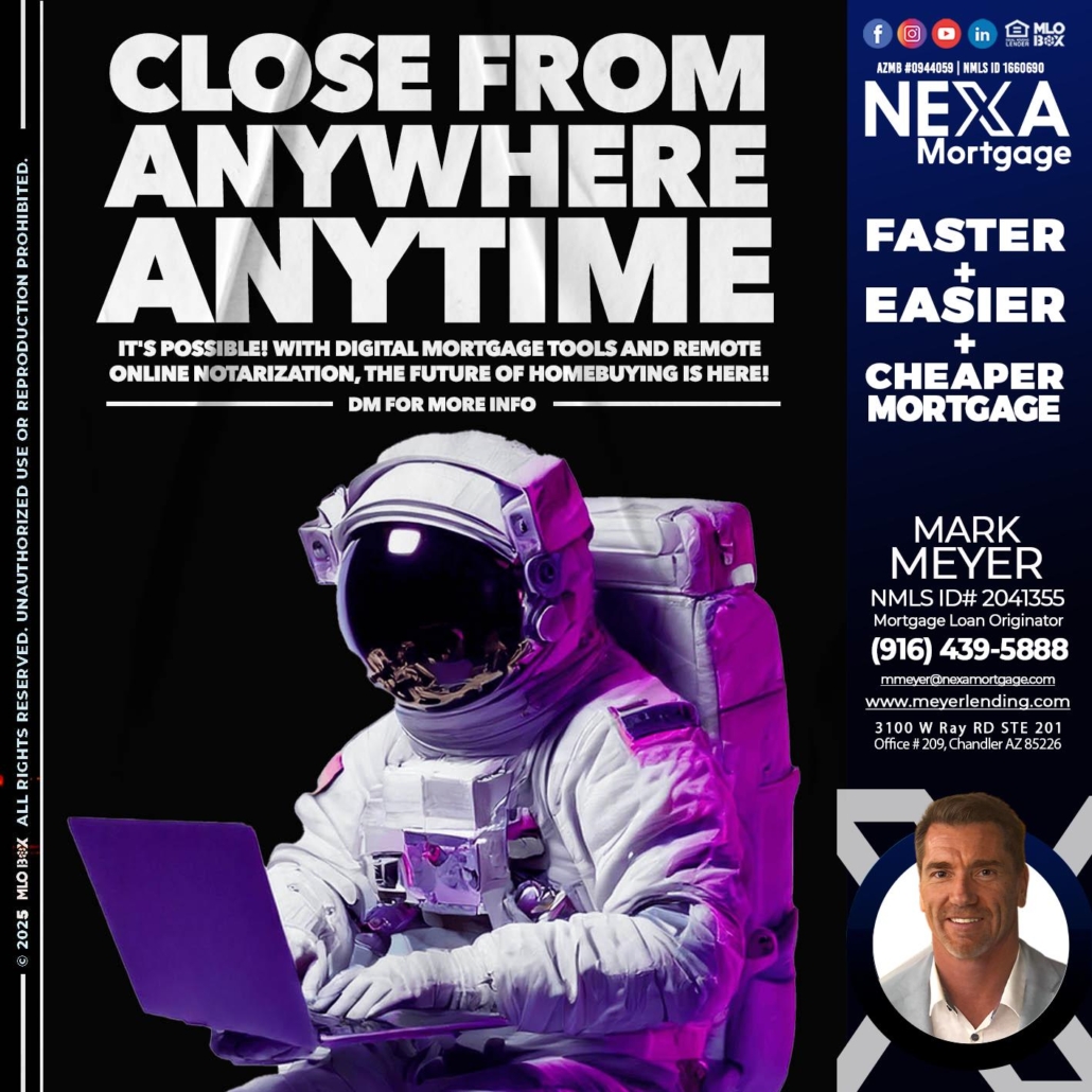 Hi, my name is Mark Meyer. I’m a Loan Officer with NEXA Mortgage LLC., offering personalized mortgage solutions, fast customized quotes, great rates and service with integrity.