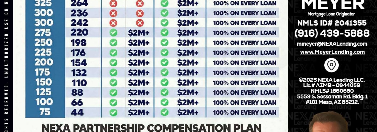 COMP - Mark Meyer -Mortgage Loan OriginatorHi, my name is Mark Meyer. I’m a Loan Officer with NEXA Lending LLC., offering personalized mortgage solutions, fast customized quotes, great rates and service with integrity.