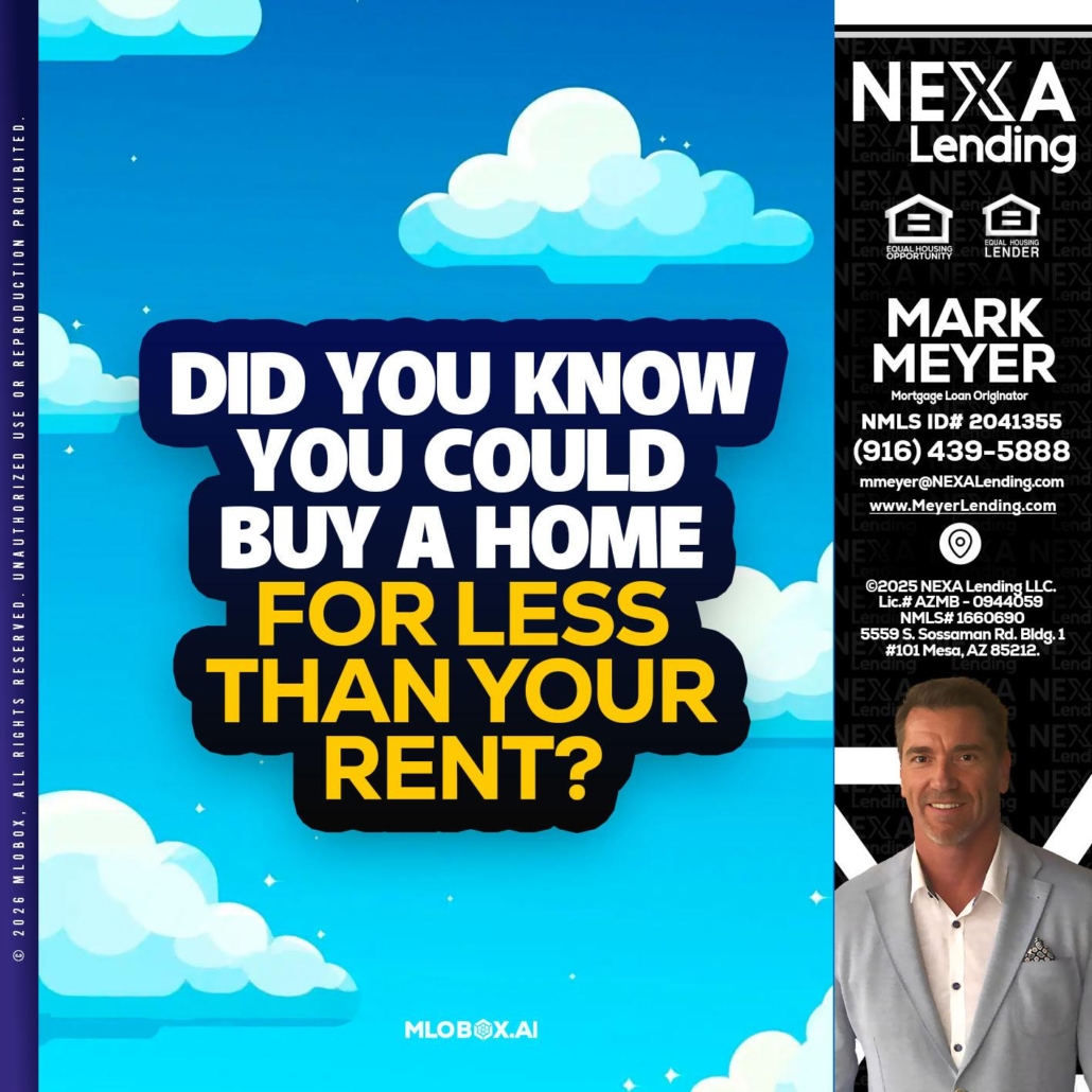 Hi, my name is Mark Meyer. I’m a Loan Officer with NEXA Lending LLC., offering personalized mortgage solutions, fast customized quotes, great rates and service with integrity.