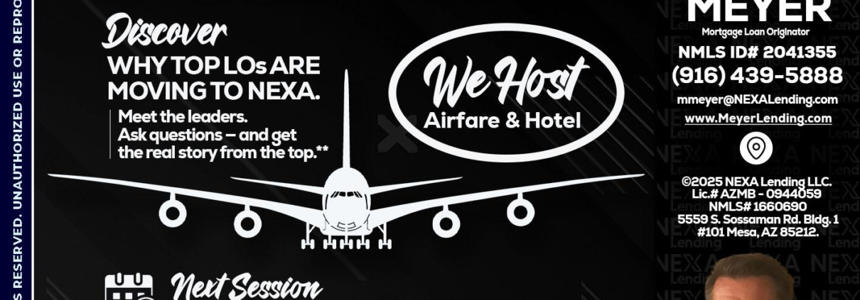 Hi, my name is Mark Meyer. I’m a Loan Officer with NEXA Mortgage LLC., offering personalized mortgage solutions, fast customized quotes, great rates and service with integrity.