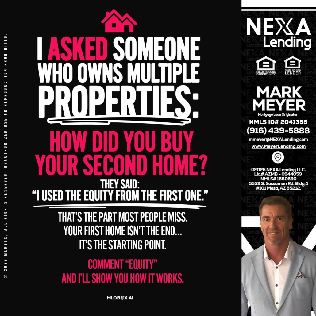 Hi, my name is Mark Meyer. I’m a Loan Officer with NEXA Lending LLC., offering personalized mortgage solutions, fast customized quotes, great rates and service with integrity.