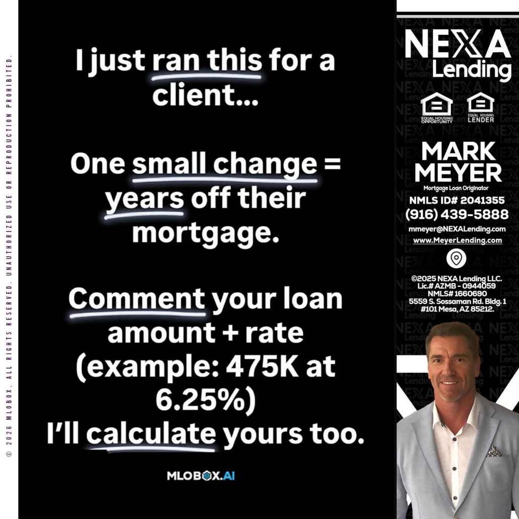 Hi, my name is Mark Meyer. I’m a Loan Officer with NEXA Lending LLC., offering personalized mortgage solutions, fast customized quotes, great rates and service with integrity.