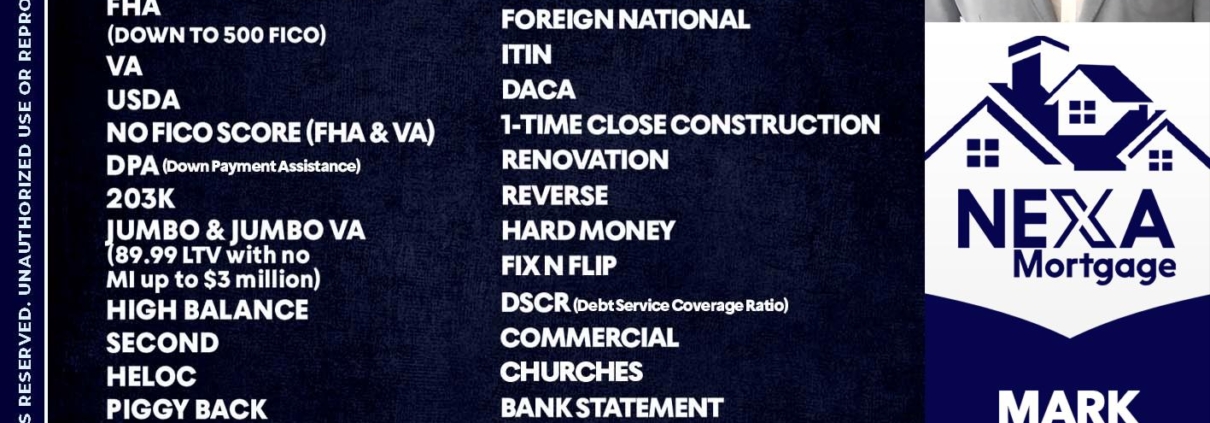 Hi, my name is Mark Meyer. I’m a Loan Officer with NEXA Mortgage LLC., offering personalized mortgage solutions, fast customized quotes, great rates and service with integrity.