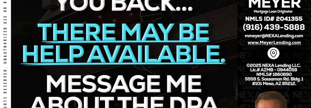 Hi, my name is Mark Meyer. I’m a Loan Officer with NEXA Lending LLC., offering personalized mortgage solutions, fast customized quotes, great rates and service with integrity.