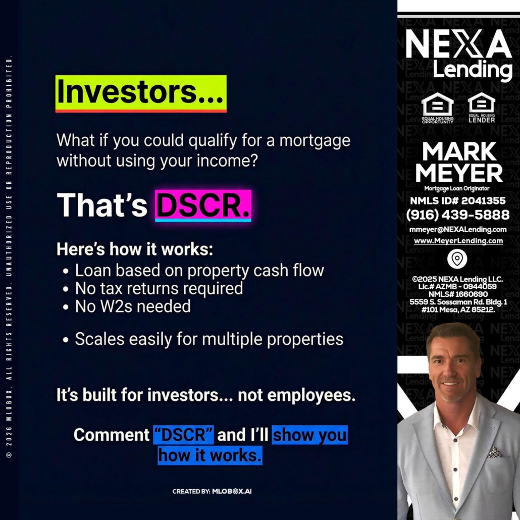 Hi, my name is Mark Meyer. I’m a Loan Officer with NEXA Lending LLC., offering personalized mortgage solutions, fast customized quotes, great rates and service with integrity.