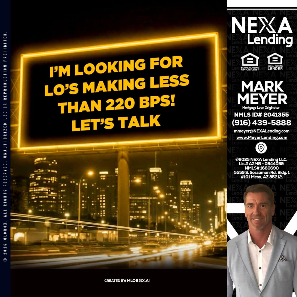 Hi, my name is Mark Meyer. I’m a Loan Officer with NEXA Lending LLC., offering personalized mortgage solutions, fast customized quotes, great rates and service with integrity.