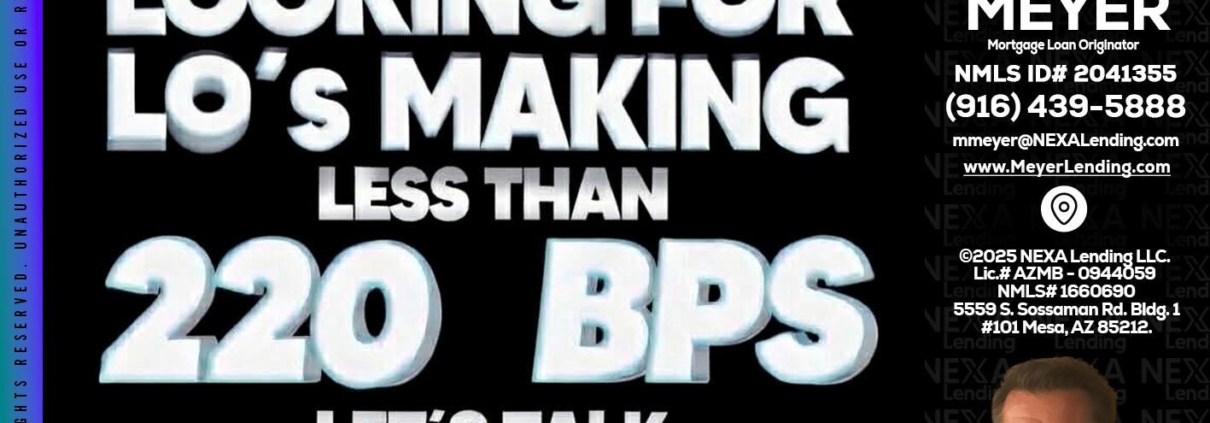 Hi, my name is Mark Meyer. I’m a Loan Officer with NEXA Lending LLC., offering personalized mortgage solutions, fast customized quotes, great rates and service with integrity.