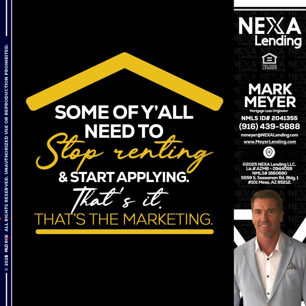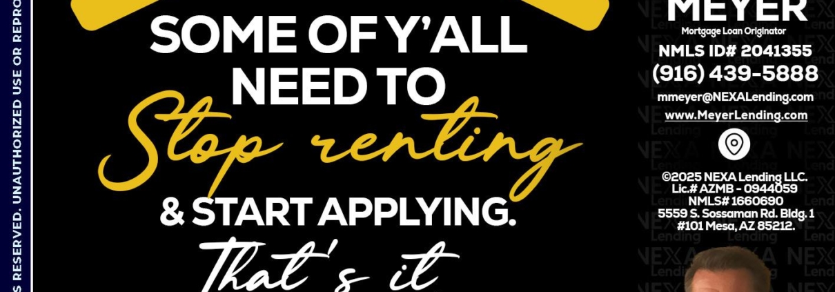 Hi, my name is Mark Meyer. I’m a Loan Officer with NEXA Mortgage LLC., offering personalized mortgage solutions, fast customized quotes, great rates and service with integrity.
