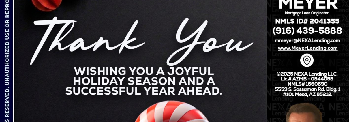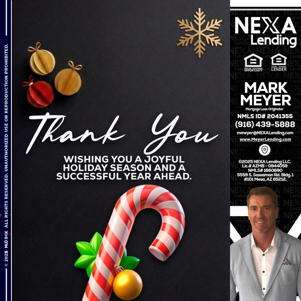 THANK YOU - Mark Meyer -Mortgage Loan OriginatorHi, my name is Mark Meyer. I’m a Loan Officer with NEXA Lending LLC., offering personalized mortgage solutions, fast customized quotes, great rates and service with integrity.