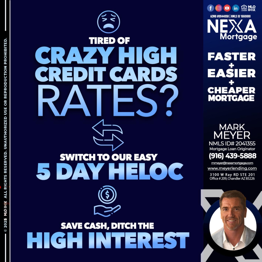TIRED OF HIGH RATES - Mark Meyer -Mortgage Loan OriginatorHi, my name is Mark Meyer. I’m a Loan Officer with NEXA Mortgage LLC., offering personalized mortgage solutions, fast customized quotes, great rates and service with integrity.