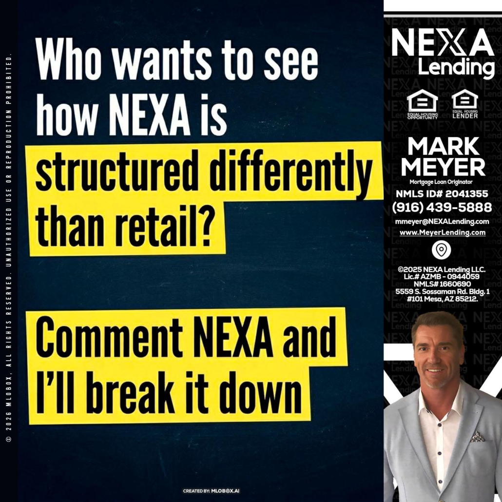 Hi, my name is Mark Meyer. I’m a Loan Officer with NEXA Lending LLC., offering personalized mortgage solutions, fast customized quotes, great rates and service with integrity.